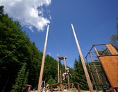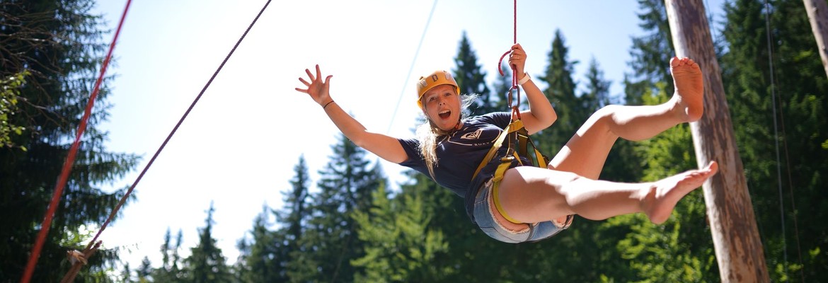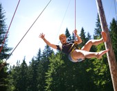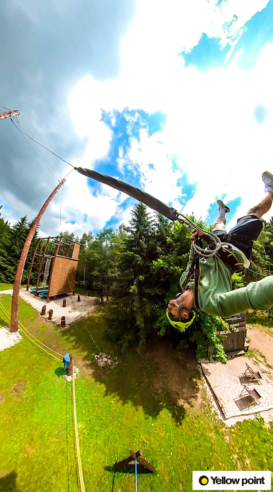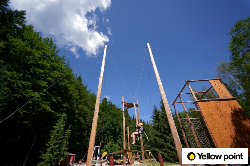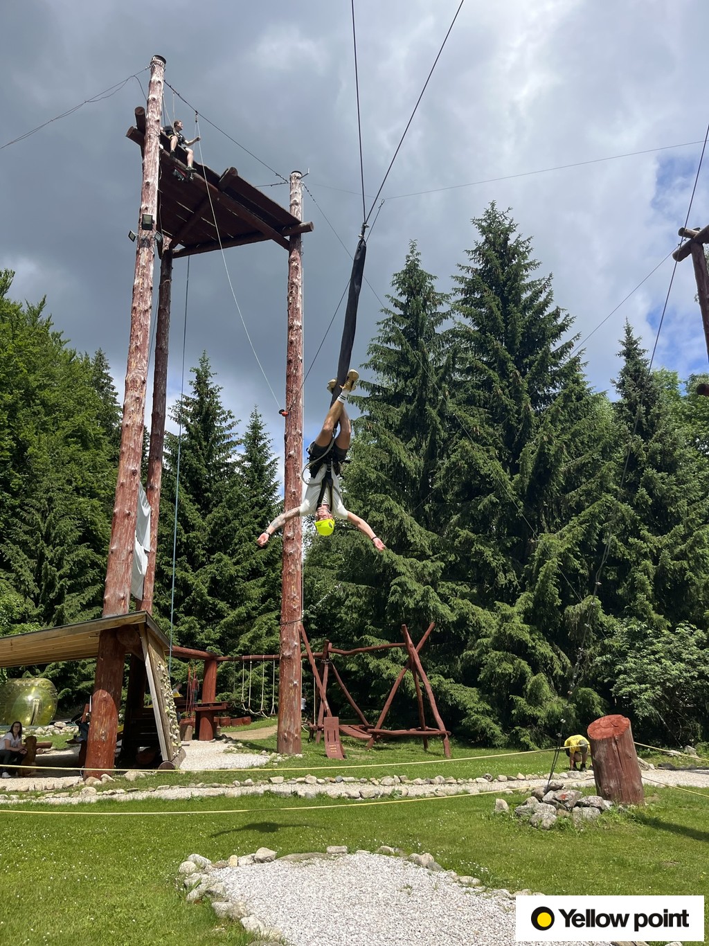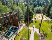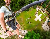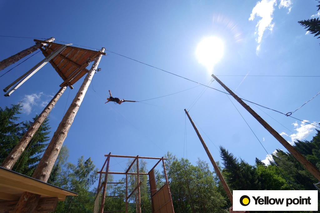 The Giant Swing is part of the Adventure Park in Špindlerův Mlýn and reaches a height of 16 meters. You can swing solo (20–120 kg) or in tandem (combined max. 240 kg). Tandem jumps are especially popular with parents and their younger children.