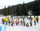 Děti jsou rozdělené do vhodných skupin dle dovedností. Navzájem se motivují, zábavnou formou soutěží a závodů rozvíjí své lyžařské dovednosti a postupují do lepších a lepších skupin lyžařů. Skupinová výuka je pro děti ve věku 6 - 13let.