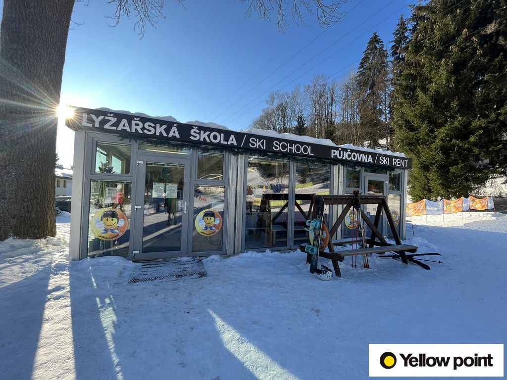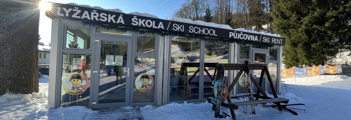 PŮJČOVNU najdete přímo v hlavní kanceláři lyžařské školy, 150 m od parkoviště.