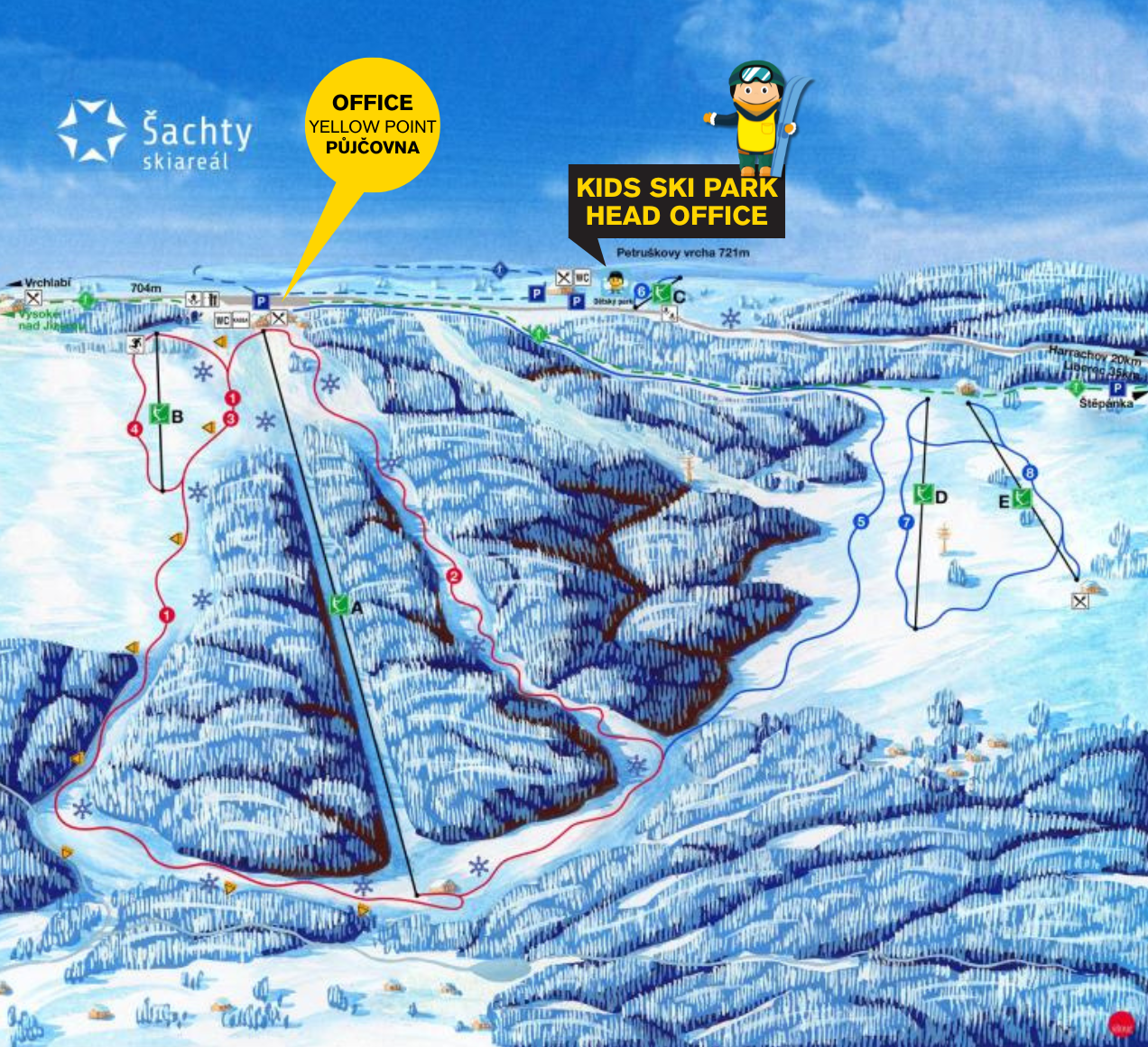 PŮJČOVNU najdete u horní stanice lyžařského vleku na Šachtách.