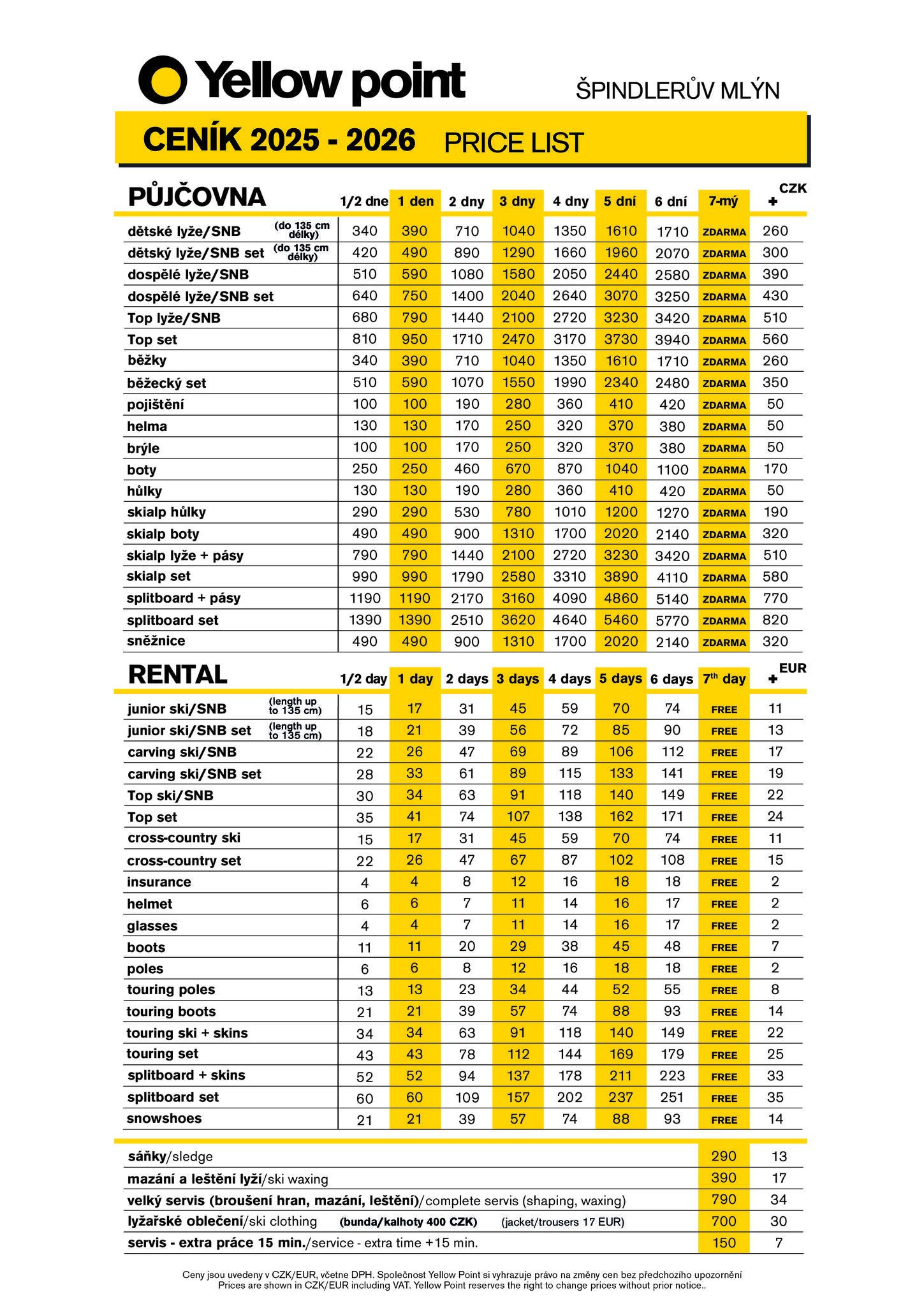Vedle Hotelu Lomnice najdete hlavní kancelář Yellow pointu, kde si rezervujete lyžařskou nebo snowboardovou výuku, domluvíte si skialpový výlet s průvodcem nebo let vírníkem.
