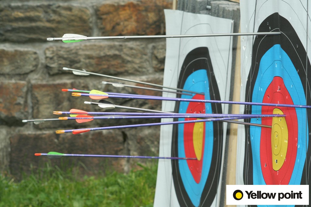 Střelba sportovními luky na vzdálenost 10 - 20 m do standarních lukostřeleckých terčů.